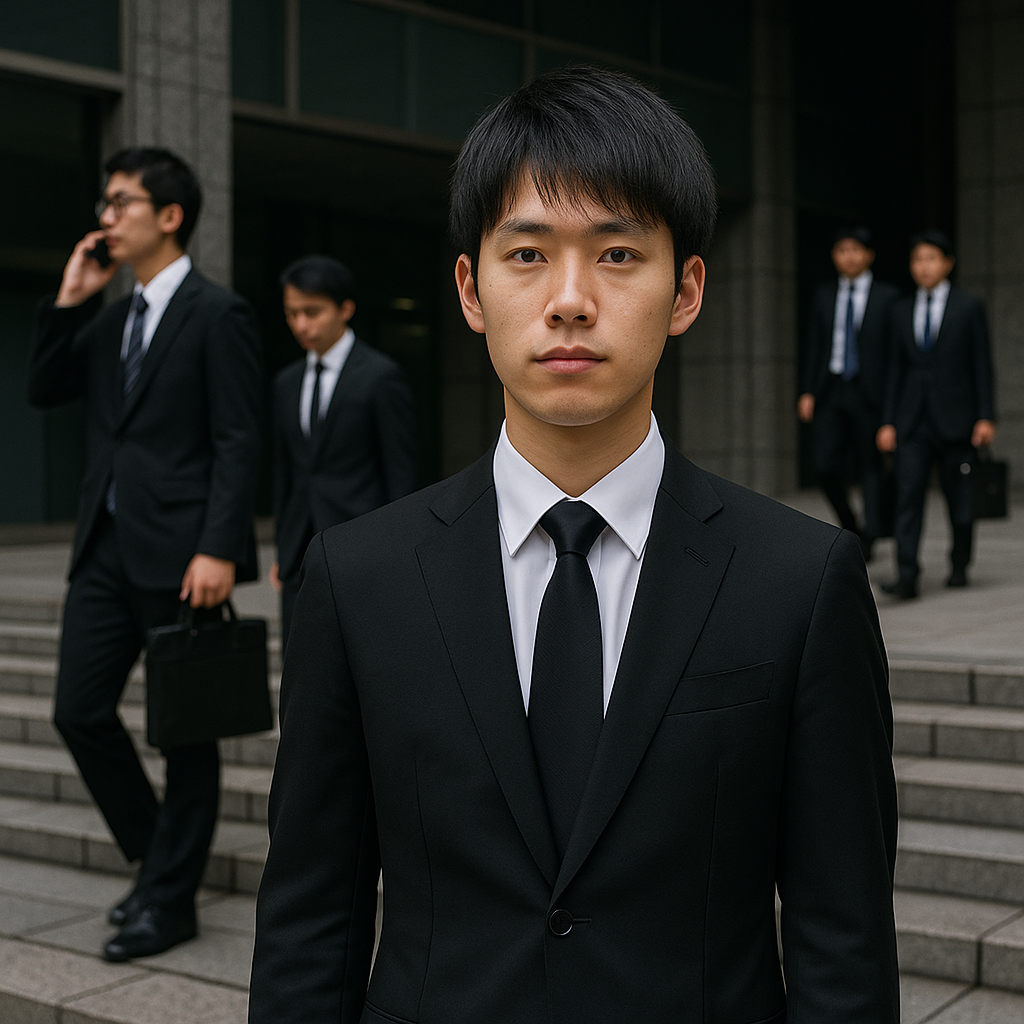 日本で黒スーツが広まった最大の要因のひとつが、リクルートスーツ文化の存在です。