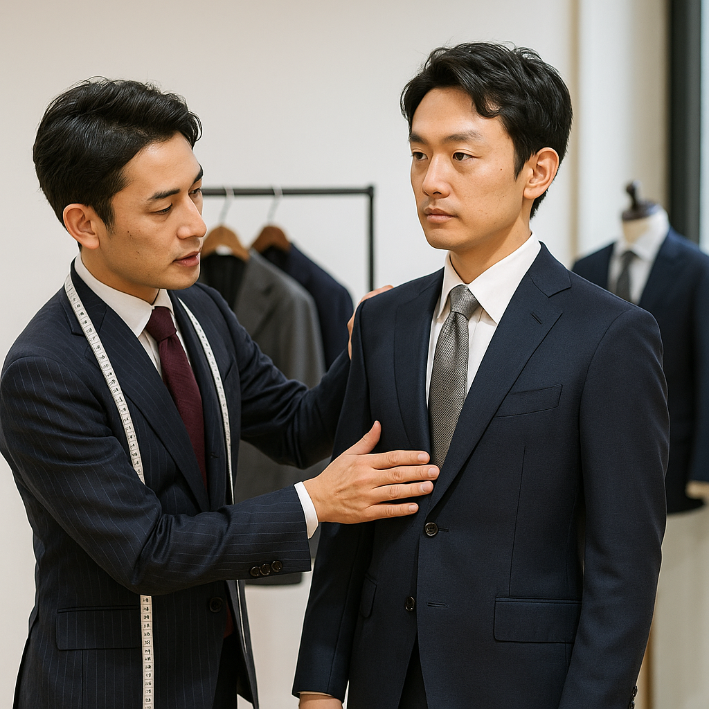 特に、肩のラインが自然に落ちているか、袖口からシャツが1cmのぞくかといった細部の調整が、スーツの完成度を大きく左右します。
