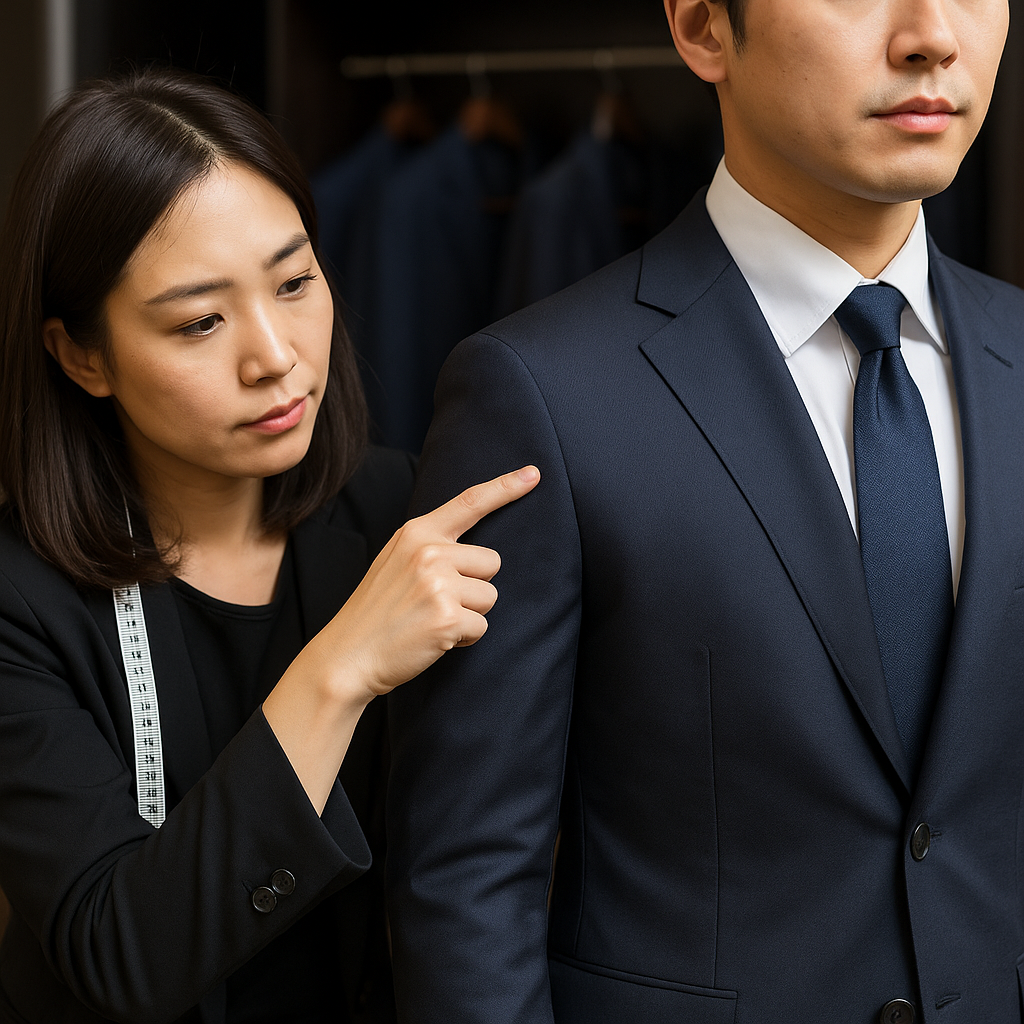 スーツの第一印象を決めるのは、何よりもサイズ感です。肩幅が合っていないと、どんなに高価なスーツでも不格好に見えてしまいます。