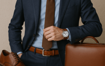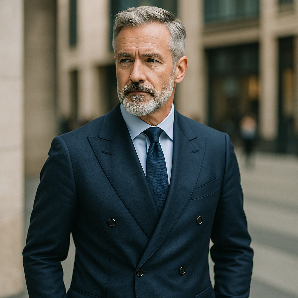 💼 仕立て屋の視点:スーツの襟や肩のラインをシャープに保つと、立ち姿が引き締まり「管理職らしさ」が自然と滲み出ます。