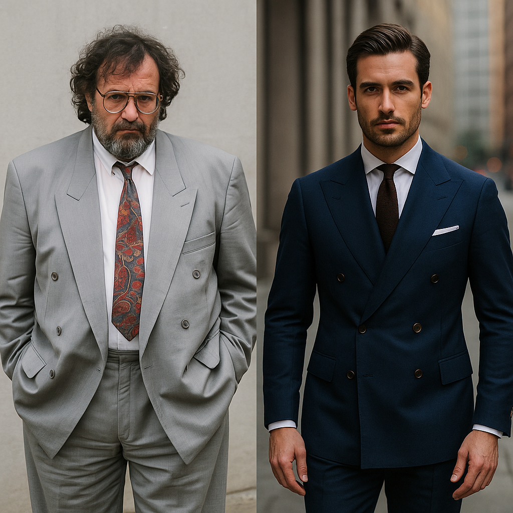 ✅ ポイント: いまのダブルスーツは“クラシックをモダンに着こなす”のが主流。古い常識を脱ぎ捨てれば、むしろ一歩先を行くスタイルになります。