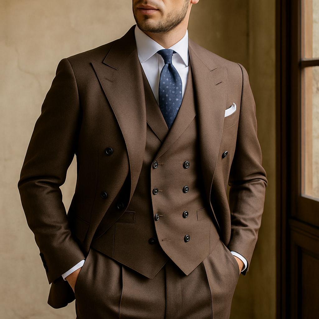 ダブルスーツにベストを合わせることは、単なる伝統ではなく、“見えない気品”を纏う選択です。必要かどうかは時代や場面によって変わりますが、「敢えて着る」という選択が、あなたの装いを一段格上に導いてくれるはずです。