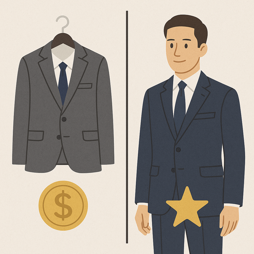 吊るしはコストやスピードを重視する人に適し、オーダーは印象や長期的な価値を重視する人に向いています。