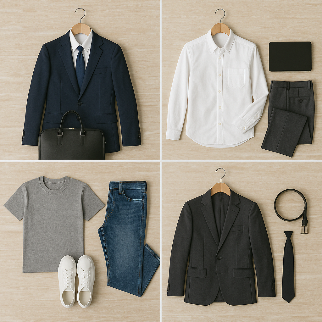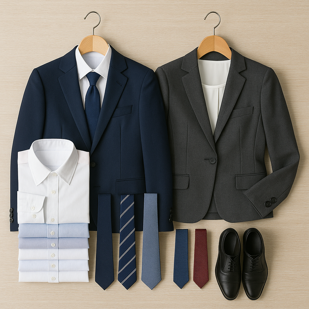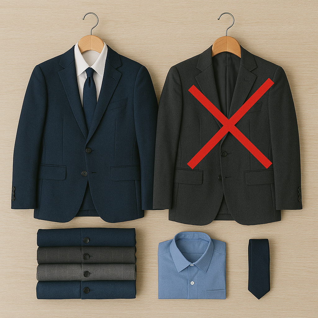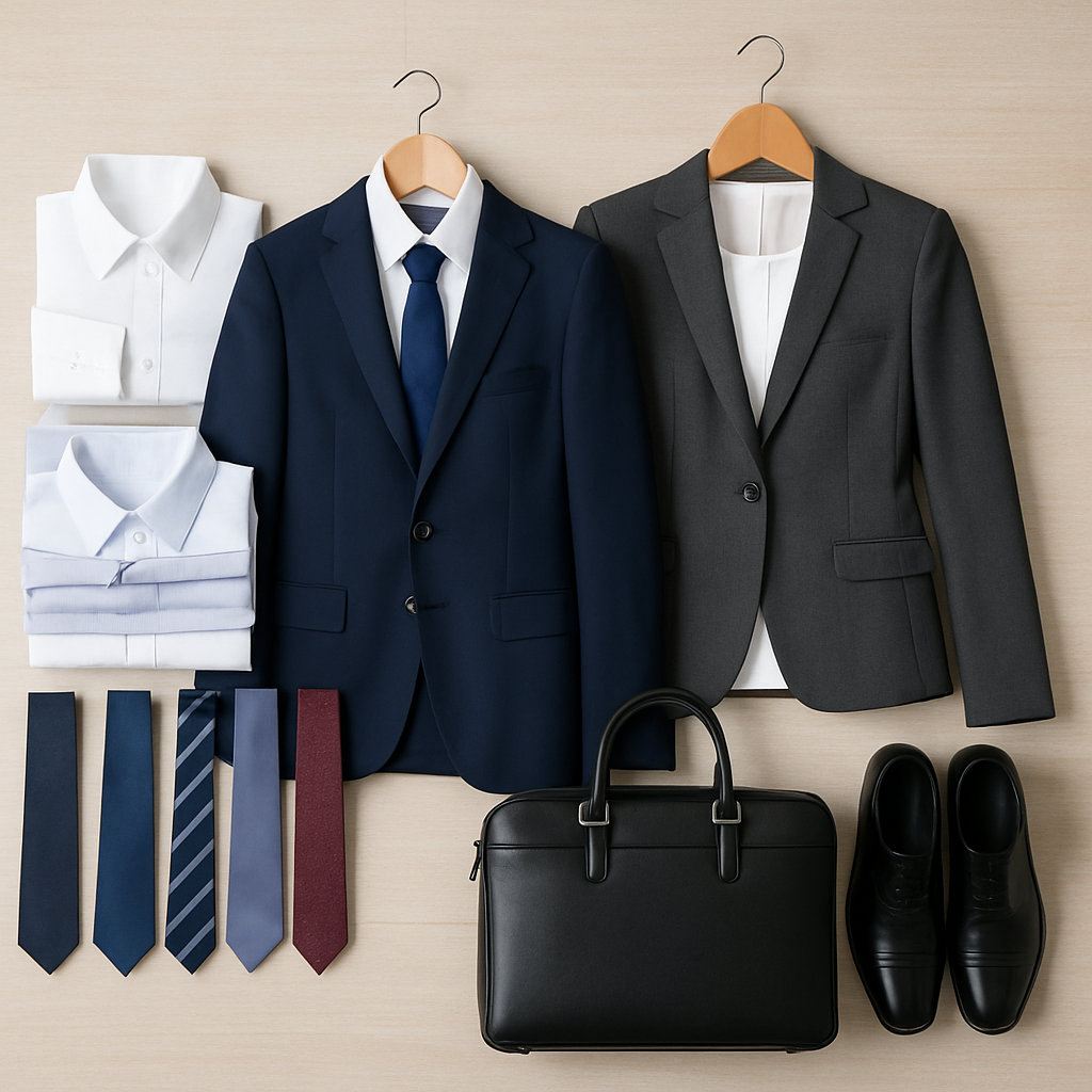 結果として、黄金比とされる 2〜3着のスーツ × 5〜7枚のシャツ は、多様な新卒の働き方に対応できる最も実用的で安定した構成といえます。