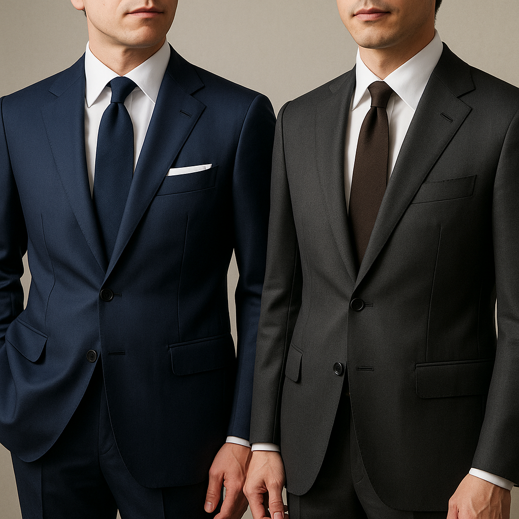 無地スーツの魅力を最大限引き出すには、まず“色の選び分け”が極めて重要です。