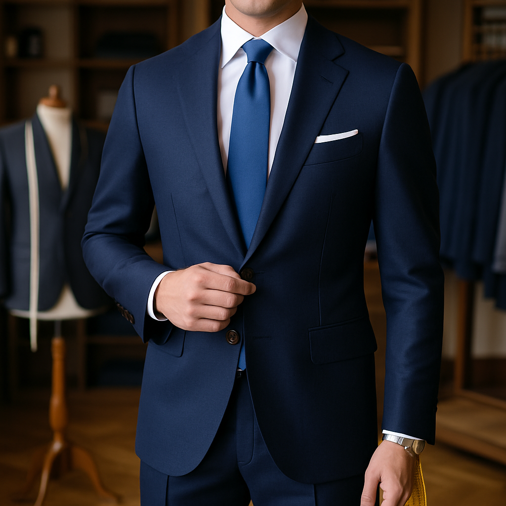 ネイビーはビジネスでも最も汎用性が高く、誠実さと清潔感を自然に表現できる王道カラーです。
