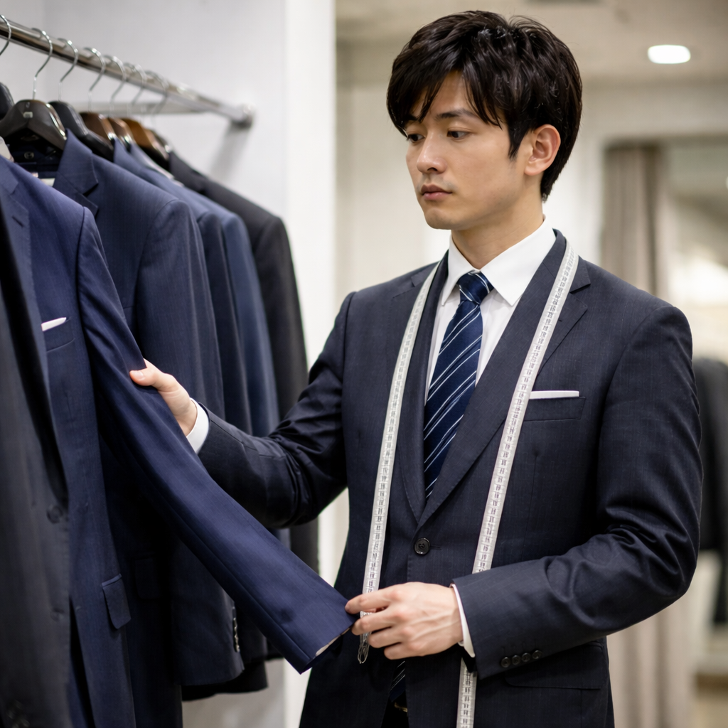 • 既製スーツに固執せず、調整や直しを前提に考える
