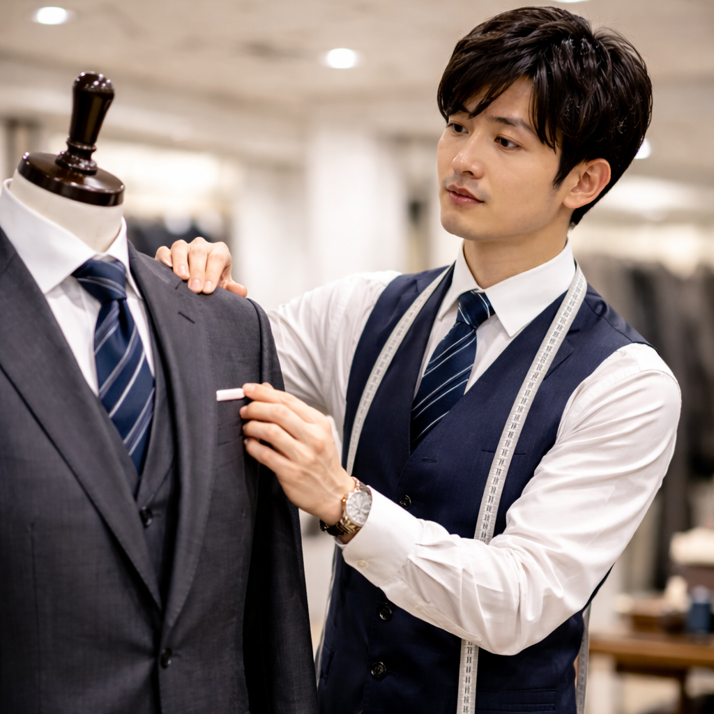 この仕組みを理解せずに「既製だから合っているはず」と思い込んでそのまま着てしまうと、小さなズレが積み重なり、全体として違和感のある印象になってしまいます。