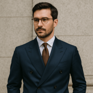 Name スリーピーススーツスタイル Data Point ネイビーのストライプスーツ スリーピースで貫録がある着こなし!色の組み合わせは、アズーロ・エ・マローネ 襟はピークドラペル 担当スタイリスト 情熱フィッター 中村 英樹 購入した体験で価値を感じるスーツ&ジャケパン!史上最高の装いをつくるオーダースーツ&ジャケパンスタイル!