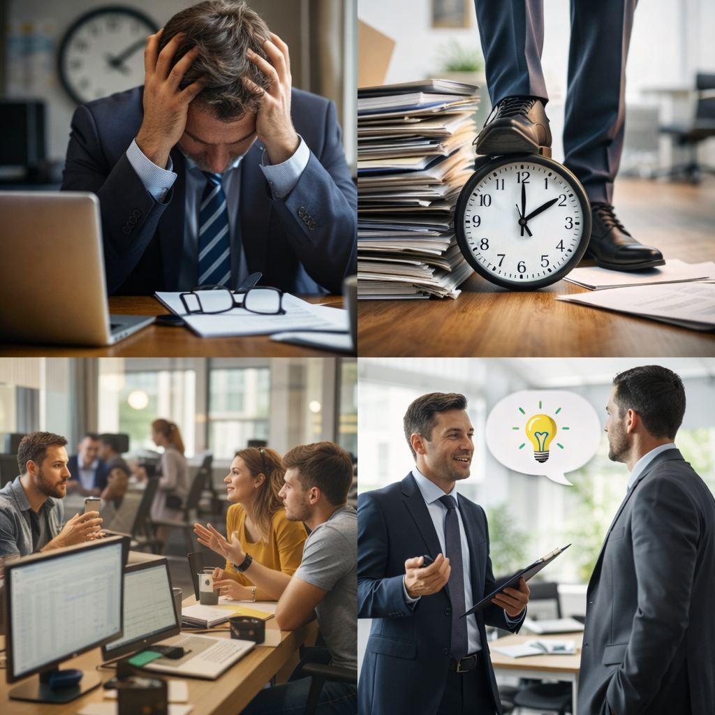 これらはいずれも業務の成果や生産性とは直接関係しないにもかかわらず、日常的に発生する負担です。