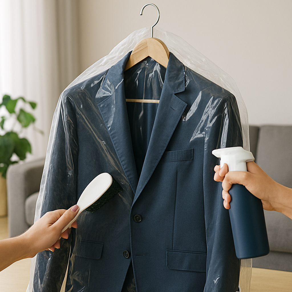 • 通気性のあるスーツカバーに替える(不織布タイプや布製のカバーがおすすめ。ホコリを防ぎつつ空気を通す)