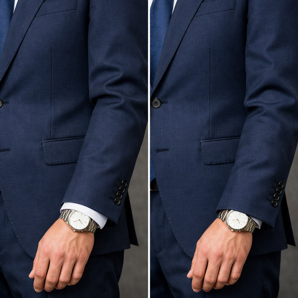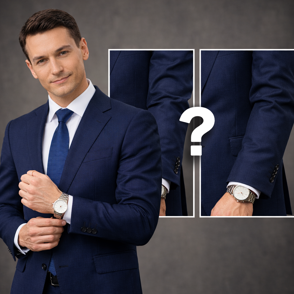 スーツの袖丈は、ほんの数センチの違いで印象が大きく変わる、非常に重要な要素です。
