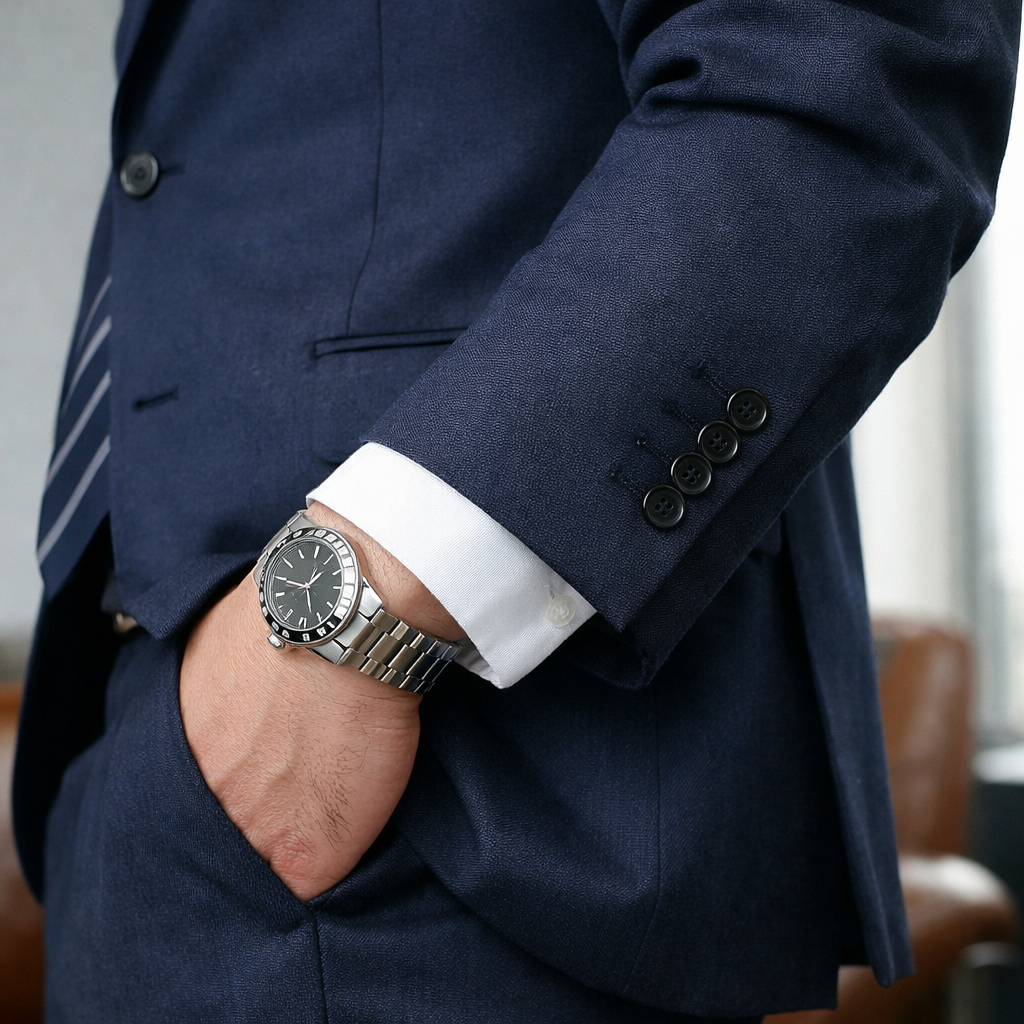 スーツを着たとき、なぜか手元だけがしっくりこない。全体のサイズ感や色、シルエットには大きな不満がないはずなのに、鏡を見るとどこか落ち着かず、少し幼く見えてしまう。