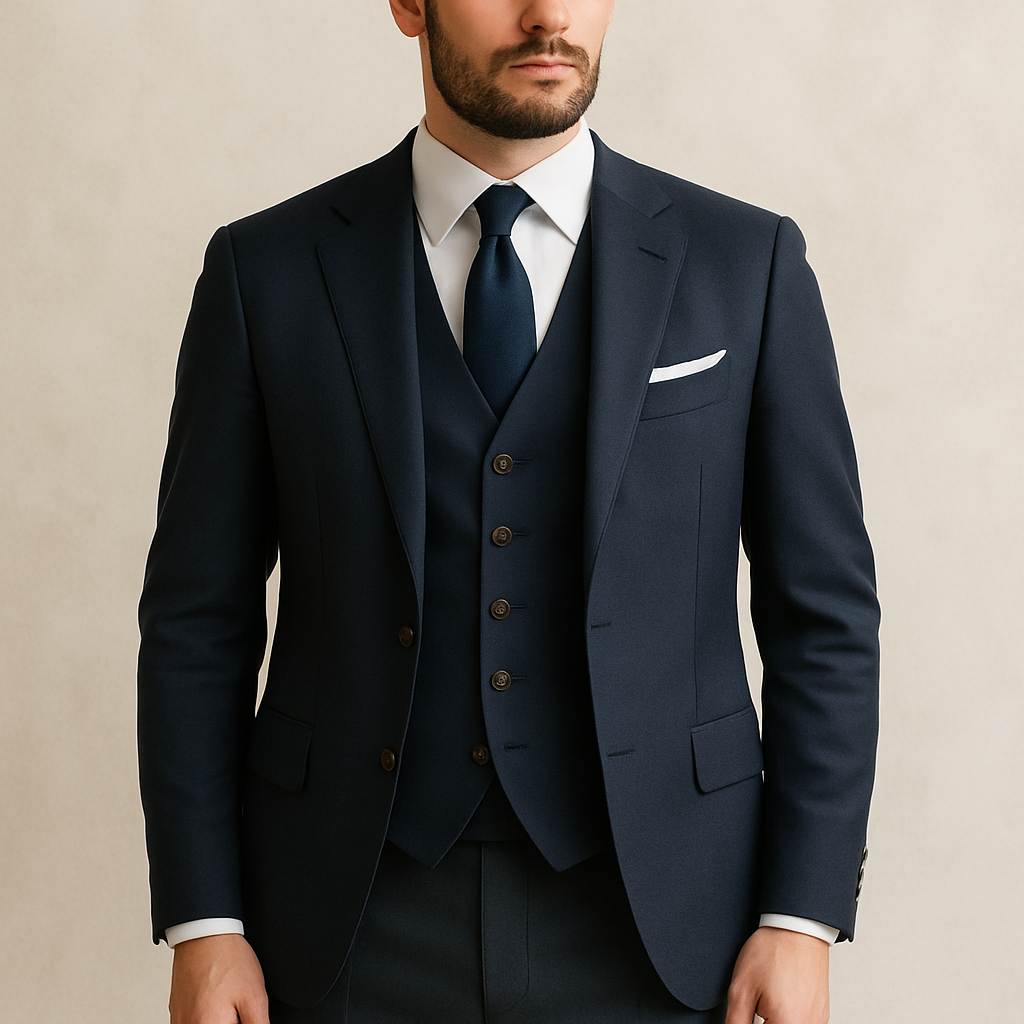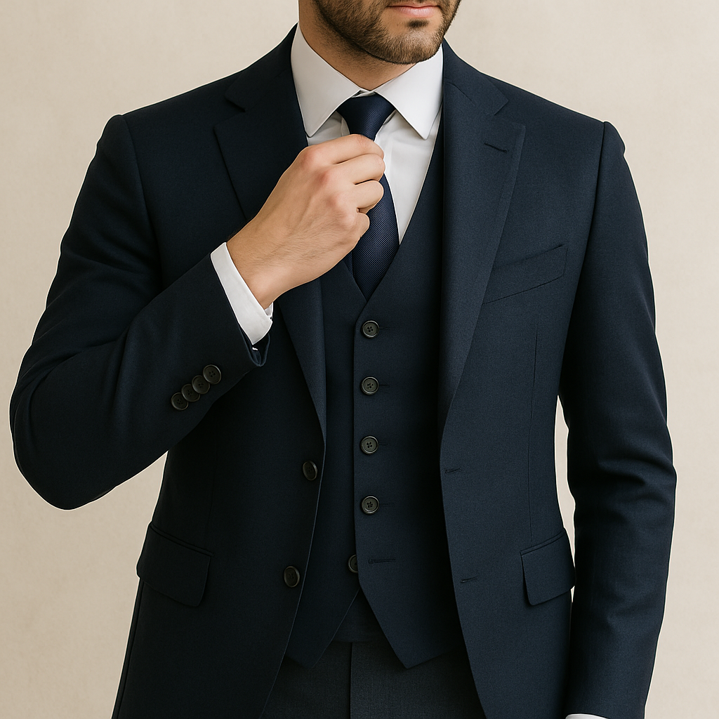 本記事では、プロの仕立て視点で、スリーピースを美しく見せるベストの正しい基準と選び方を分かりやすく解説し、身長や体型に合わせた調整の考え方まで丁寧に紹介します。