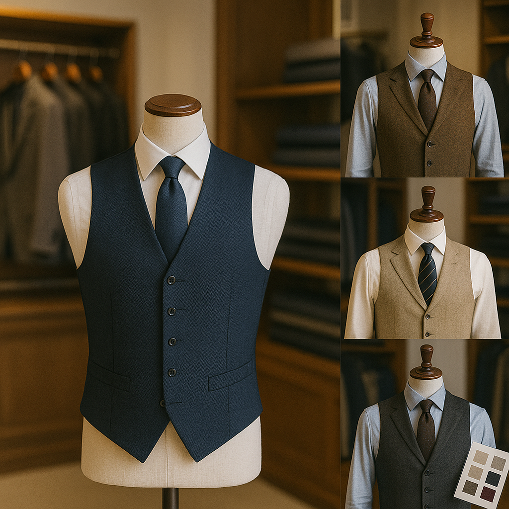 その後、英国紳士の間でスリーピーススーツとして定着し、ジャケットを脱いでもきちんと見える“中の完成度”を保つだけでなく、着る人の姿勢や立ち振る舞いを美しく見せるための重要な役割を担うようになりました。