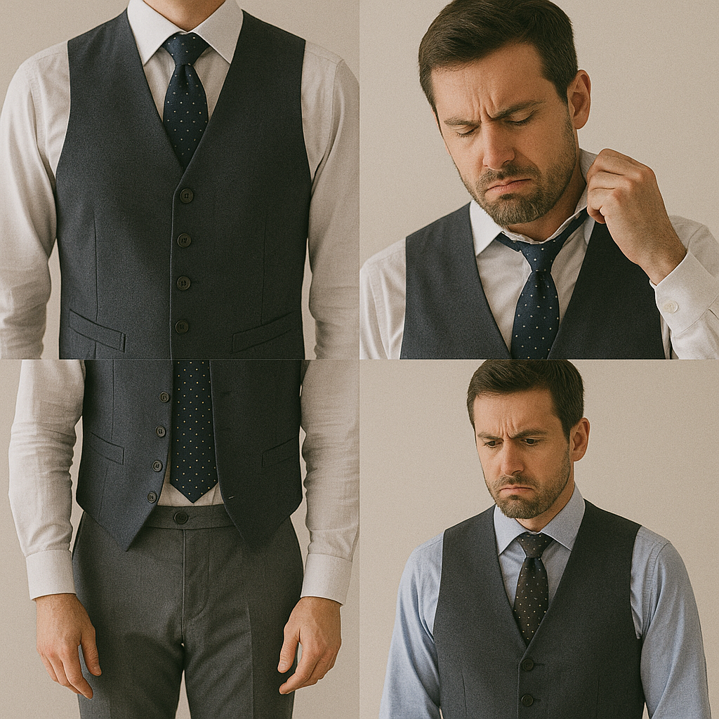 ベストはシンプルなアイテムながらも、ちょっとした着こなしの差が印象を大きく左右します。ボタンの留め方や丈の長さ、シャツの状態など、細部への気配りこそが大人の装いを完成させます。