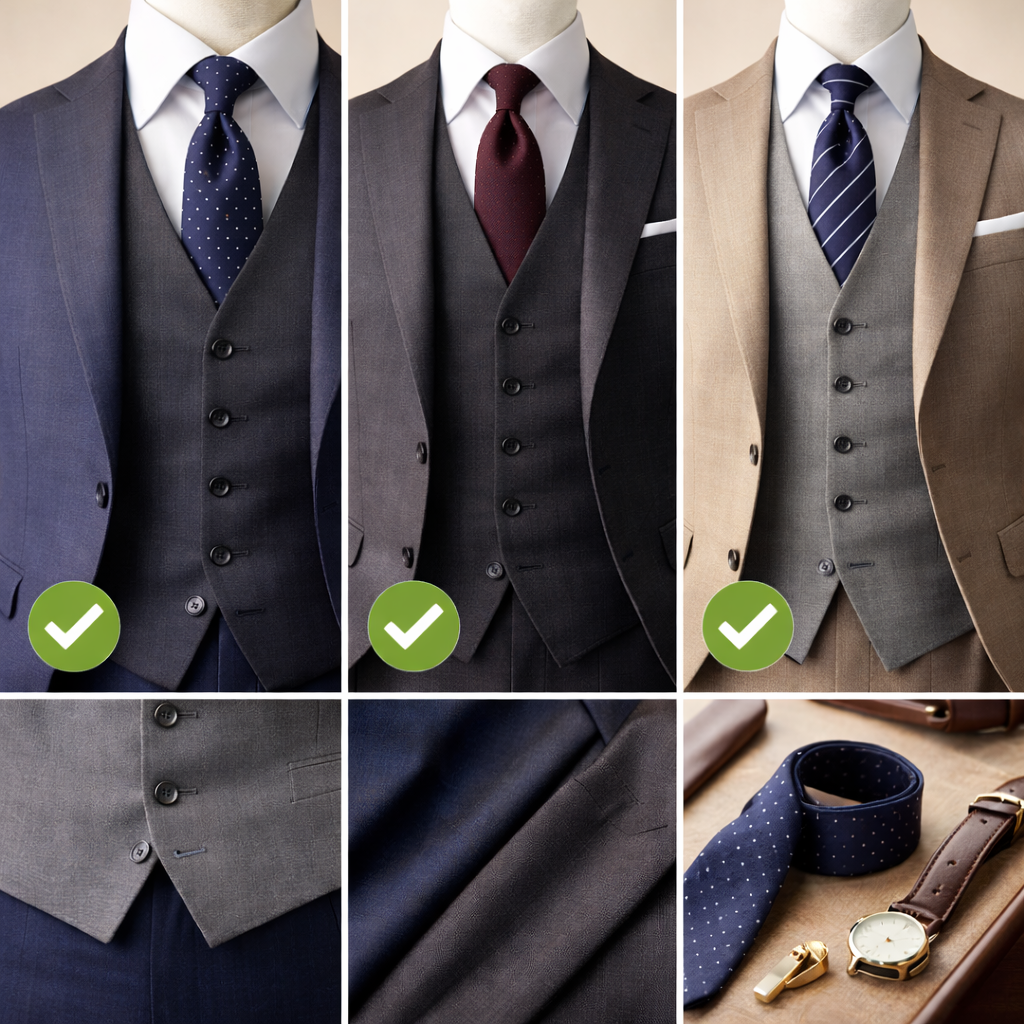 スーツ・ベスト・ネクタイの組み合わせは、一見すると難しく感じられがちですが、実際にはいくつかの基本ルールを理解しておくだけで、大きく失敗することはなくなります。