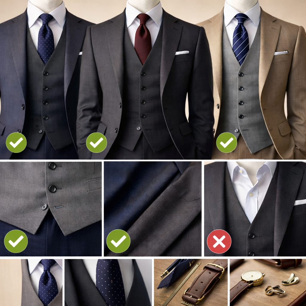スーツ・ベスト・ネクタイは、それぞれ単独で考えるのではなく「セットで完成する装い」です。基本ルールを押さえることで、誰でも一段上のスーツスタイルを実現できます。