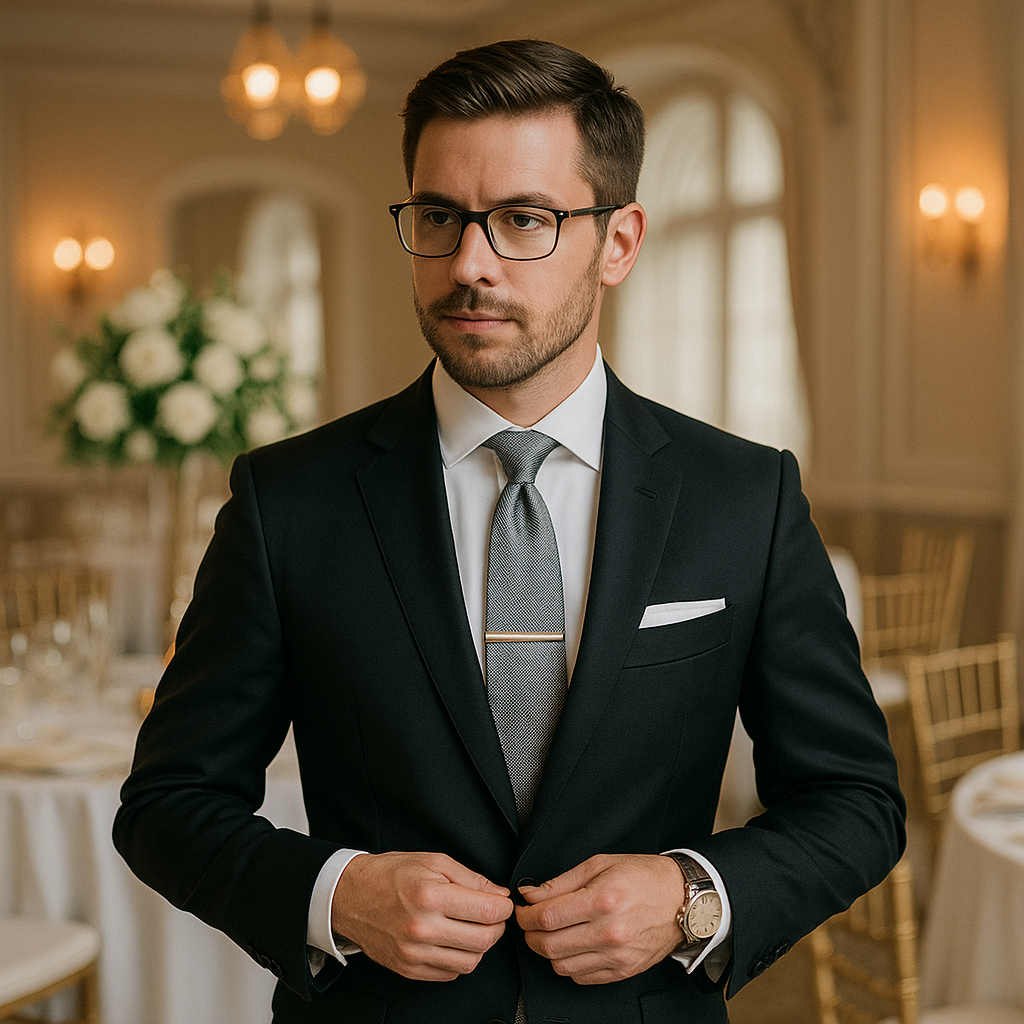 結婚式にビジネススーツしかなくても、基本のマナーと小物使いを押さえれば十分に格式ある装いが可能です。